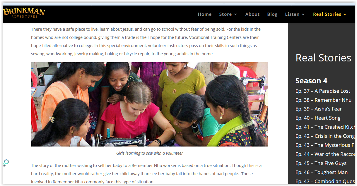 These stories are not only entertaining, they enhance our homeschool lessons as well. We learn about history and geography (where is Cambodia?) culture and bible (why do hey have church in a house in secret?) Even science and engineering (why did it rain so much and how does a dam hold back the water to form a lake?)