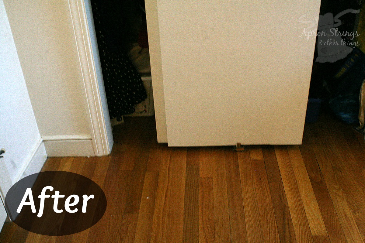 Sometimes I choose a section of floor or a table top or one shelf as my boundary. Tackle this one space and I am finished. This corner space behind my bedroom door has been a catch-all for things that are found (but did not belong) in other parts of the house during pick up sessions. My goal was to clear this space, not the whole room, not the whole closet, just this space.